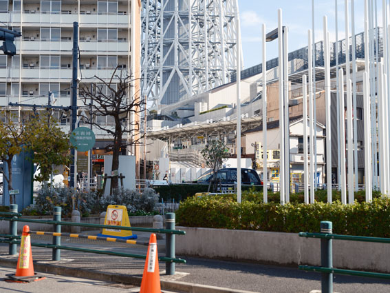 巨大で近未来的な建造物とは対照的に、その足元には昭和・平成・令和が幾重にも折り重なったような風景が広がっている。